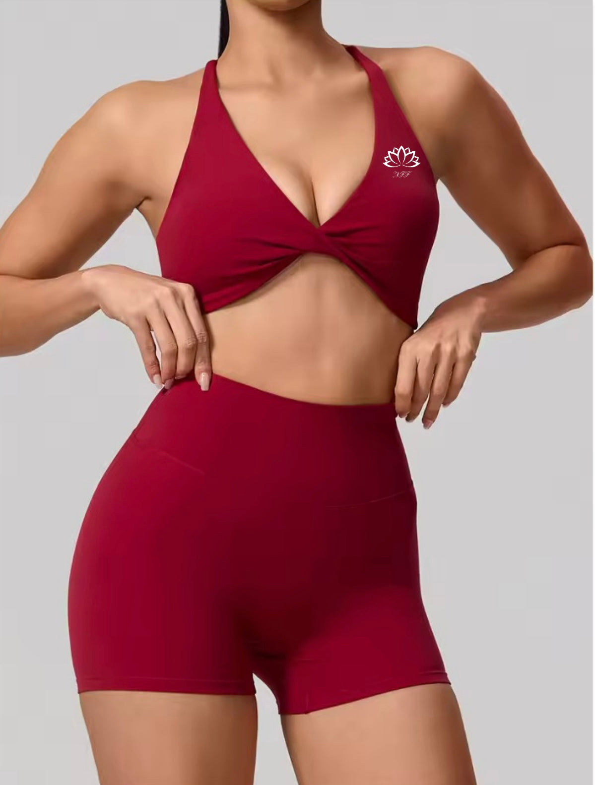 The AVELA Crop Top features a flattering front twist detail and elegant cross-back straps that highlight the shoulders and upper back beautifully.